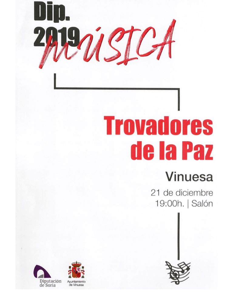 Estas Navidades, el grupo "Trovadores de la Paz" vienen a poner melodia y ritmo a Vinuesa, con un concierto en el salón de actos de dicho Ayuntamiento el sábado 21 a las 19.30h. Un evento novedo en el municipio, para contagiar con sus villancicos a todos los oyentes de espiritu navideño.