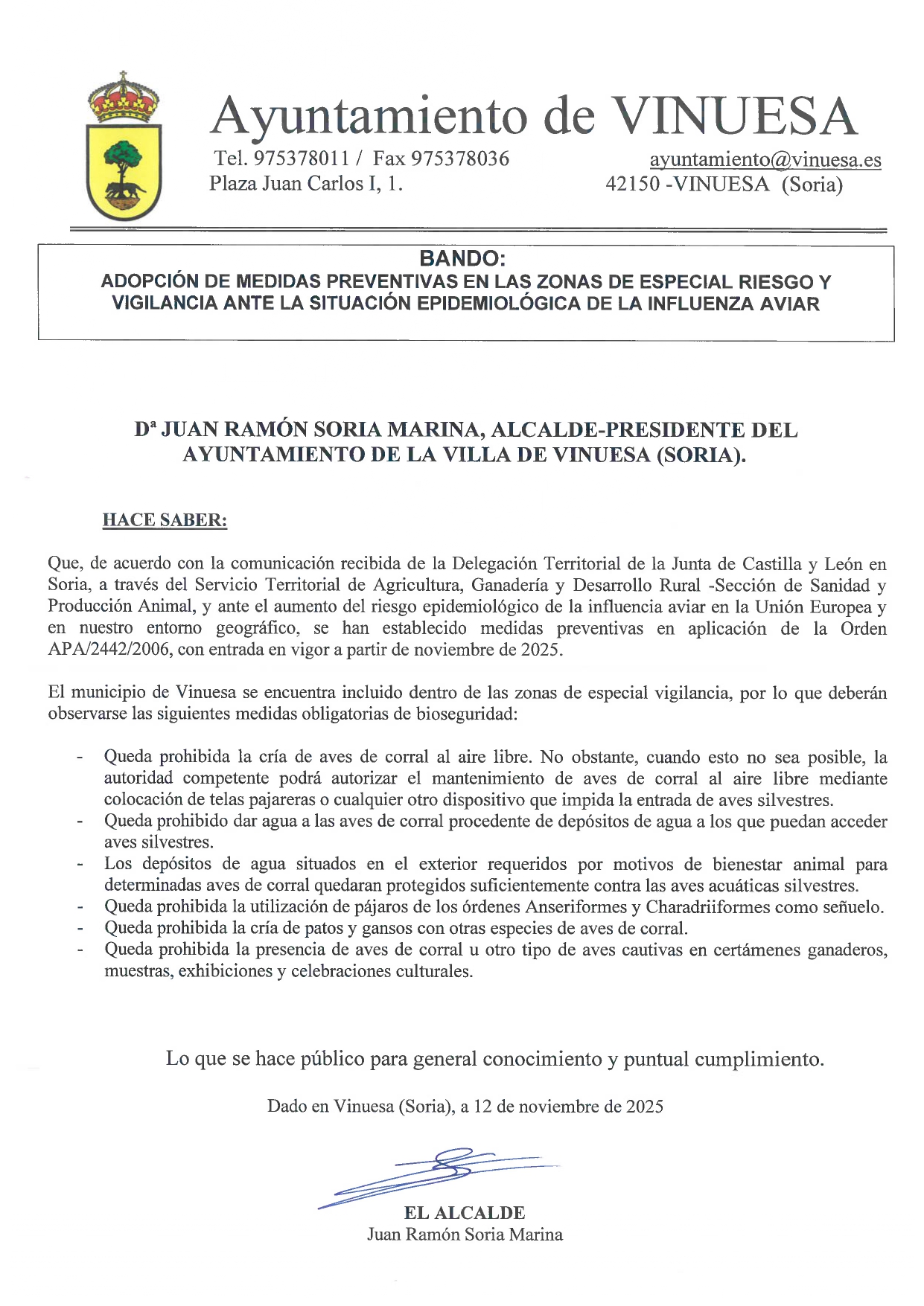 ADOPCIÓN DE MEDIDAS PREVENTIVAS ENLAS ZONAS DE ESPECIAL VIGILANCIA ANTE LA SITUACIÓN EPIDEMIOLÓGICA DE LA INFLUENZA AVIAR.