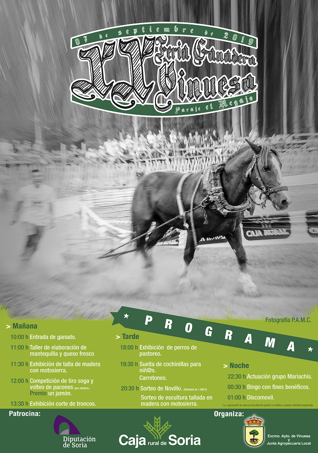 Uno de los eventos más representativos y con mayor acogida de nuestro pueblo, llega este sábado, dia 7 de Septiembre, al parsaje "El Regajo" alcanzando ya la XX edición, la Feria Ganadera. Comenzando a las 10.00h con la entrada de ganado, taller de mantequilla, exhibiciones de corte de tronco y tallaje de escultura con motosierra y a media mañana concurso de tira soga y volteo de pacones.